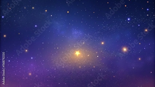 Create a minimalist background with a subtle noise effect resembling a starry sky. Use a dark gradient from deep purple to midnight blue, with tiny specks of white and faint accents of shimmering gold