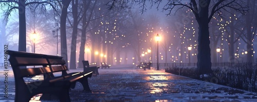 create, realistic, image, park, night, empty, single, bench, foreground, lamp, winter, soft, evening, dawn, dusk, glow, leaves, still, dim, softly, calm, scatter, mood, peaceful, set, path, street light, desert, serene, street, view, puddle, reflect, urban, city, tranquil, night time, quiet, scene