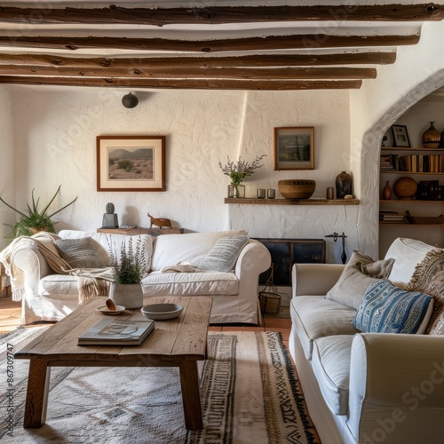 Create image of living room, soft overcast lighting, walls soft white color, empty