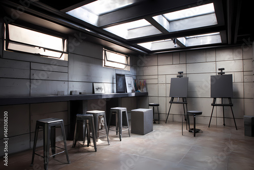 Create with Clarity: Minimalist Art Studio Featuring Concrete Blocks, Natural Light, and Clean Canvas Spaces