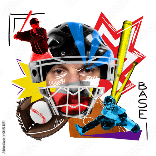 sport, game, contemporary, art, collage, baseball, sport, bat, glove, helmet, abstract art, colourful, dynamic, player, banner, poster, advertisement, element, part, mix, fusion, fan, betting, motion, athlete, energy, creative, surreal, abstract, concept, imagination, web, training, lifestyle, competition, tournament, pop art, championship, professional, cut-out, design, game, action