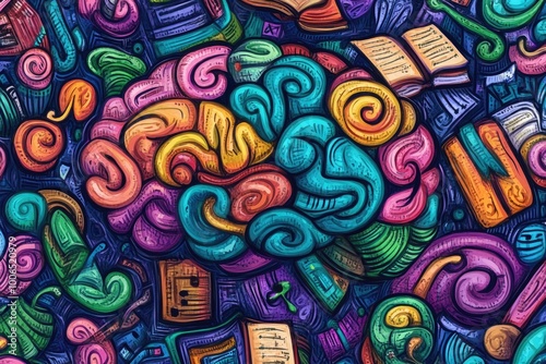 Creative Brain with Educational and Artistic Doodles in Colorful Concept Art