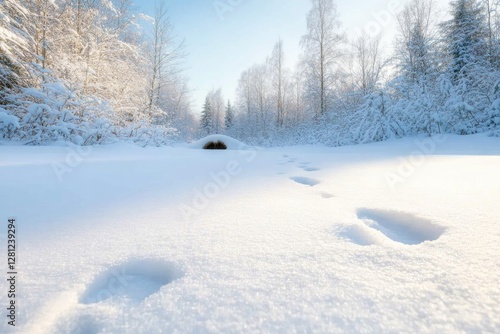 creative, capture, faint, animal, track, freshly, fallen, snow, leading, hidden, den, forest, soft, lighting, creating, serene, scene, copy space, art, design, texture, abstract, visual, colours, background, sharpened, inspiration, professional, unique, high-quality, composition, detail, modern, simplicity, concept, style, empty space, minimal