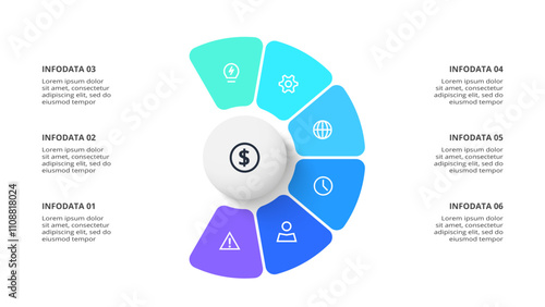 Creative concept for infographic with 6 steps, options, parts or processes. Business data visualization.