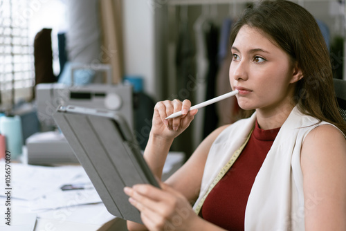 Creative designer thinking and using digital tablet working to sketch and draw in the office