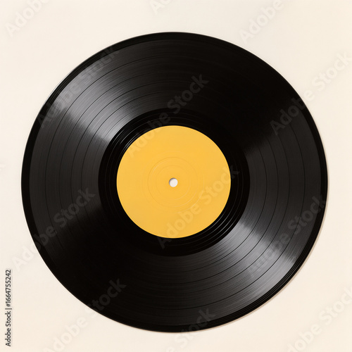 Creative display of a vintage black vinyl with yellow label