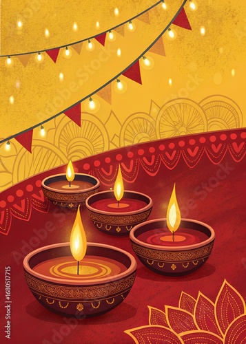 Creative Diwali background illustration, Diwali decorative diya illustration, Happy Diwali post design, Diwali or Dipavali festival, Colorful happy Diwali social media post