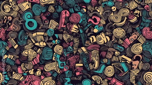 Creative doodle art with different shapes seamless texture map pattern background