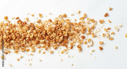 Creative food concept featuring granola on a white flat backdrop