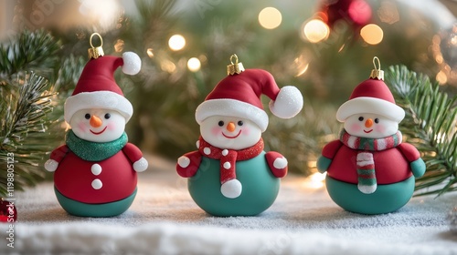 Creative holiday ornaments using polymer clay, shaped and painted as adorable holiday characters