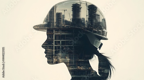 Creative illustration of construction engineer with digital background symbolizing innovation, planning, and modern technology