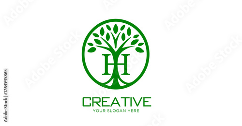 Creative Letter H with Tree Logo Design. Logo Design For Organic and Natural Brand.
