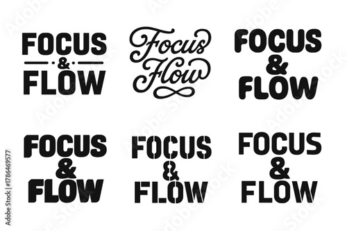 Creative Lettering Variations. Focus and flow. Set lettering. harmonious lettering variations of the same emblematic concept, each with different artistic
