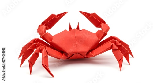 Creative Origami Red Crab Model Isolated on White Background Art