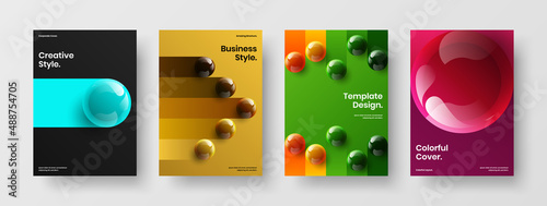 Creative presentation design vector layout composition. Vivid realistic balls annual report concept bundle.