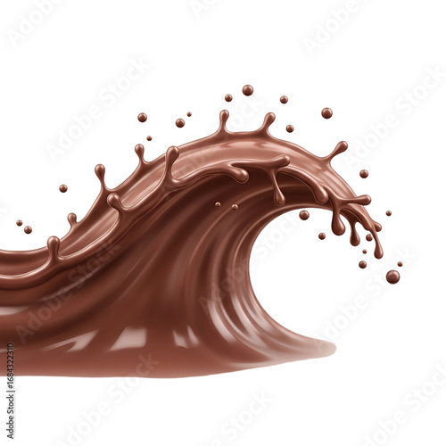 Creative splash of melted chocolate shaped like a wave isolated on transparant background