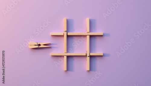 Creative Tic Tac Toe Game Made with Wooden Clothespins on Soft Purple Background