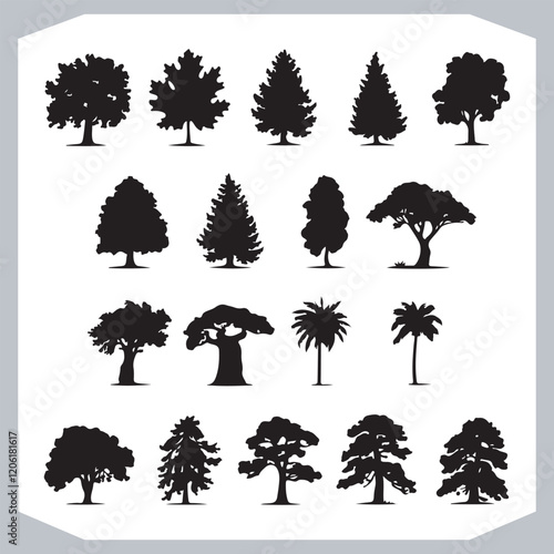 elegant, tree, silhouette, collection, black, vector, design, iconic, nature, art, illustration, graphic, leaf, branch, monochrome, minimal, abstract, foliage, organic, simple, stylish, digital, background, environmental, landscape, eco, vintage, decorative, harmony, growth, forest, trunk, modern, unique, pattern, natural, ecology, plant, scenic, shape, artistic, shadow, structure, symbolic, minimalist, design, environment