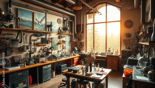 workshop, tool, vintage, creativity, light, nature, instrument, organisation, art, science, design, atmosphere, wooden, craftsmanship, home, studio, glasses, metal, decor, environment, inspiration, project, exploration, aesthetic, engineering, innovation, idea, photo, equipment, functionality, roomy, collection, warmth, ambience, simplicity, restoration, technology, element, structure, habitat, arrangement, beauty, fantasy, variety, material, colours, form, research, life events