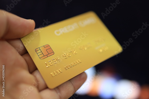 Credit card finance concept, online shopping, financial security.