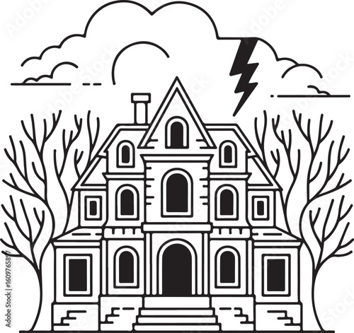 Creepy Halloween Mansion – Haunted House Outline Vector Icon