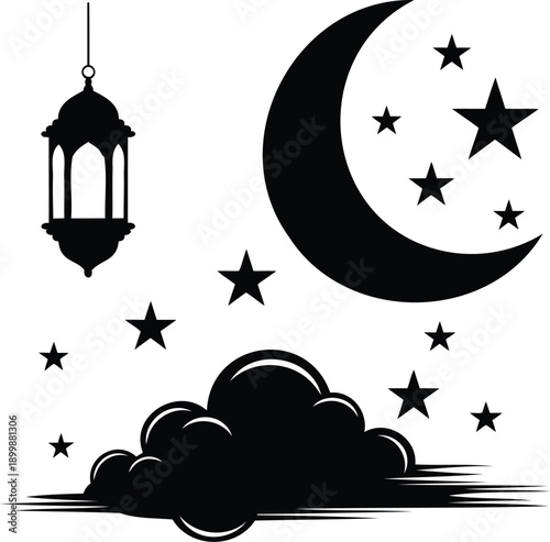 eid, islamic, muslim, moon, crescent moon, star, motif, pattern, decorative, ornate, traditional, art, design, vector, illustration, graphic, religion, spirituality, greeting, ramadan, festive, holy, celestial
