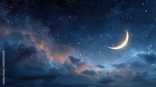 night, sky, star, moon, crescent, cloud, cosmos, celestial, astronomy, heavenly, space, galaxy, dark, blue, dreamy, serene, peaceful, calm, tranquil, magic, mystical, romantic, beautiful, nature, twilight, evening, stellar, lunar, astral, cosmic, universe, gloaming, starry, atmosphere, glowing, dark blue, scene