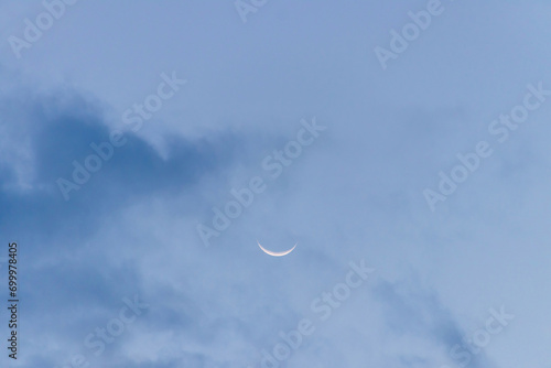 Crescent moon on blue sky. Look like a smile on a good day.