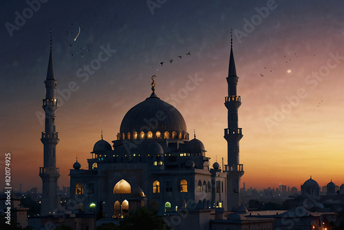 moon, religion, muslim, evening, ramadan, sky, arabic, background, beautiful, islam, islamic, crescent, mosque, sunset, holy, night, blue, celebration, culture, religious, month, dark, silhouette, light, traditional, crescent moon, greeting, landscape, god, design, twilight, dome, space, architecture, believe, peaceful, dusk, orange, symbol, star, arab, festival, allah, eid, view, nature