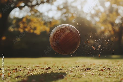 cricket, ball, sport, game, autumn, leaf, fall, grass, field, sunlight, nature, brown, orange, green, bokeh, flying, motion, blur, dynamic, energy, action, vibrant, beautiful, shadow, colours, texture, detail, closeup, background, wallpaper, scene, image, photo