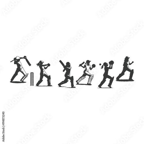 Cricket player, isolated vector silhouette, ink drawing. Cricket logo, Multiple images of a cricket player