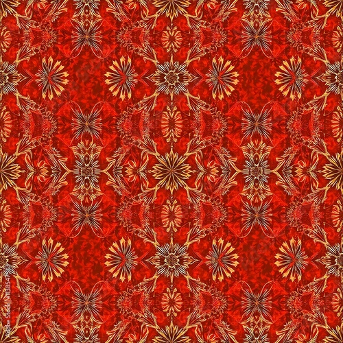 mandala, pattern, red, gold, design, texture, background, seamless, intricate, ornate, wallpaper, fabric, textile, surface, art, illustration, digital, graphic, abstract, geometric, decorative, motif, repeat, elegant, luxurious, festive, holiday, traditional, cultural, spiritual, symbolic, crimson, burgundy, orange, autumn, fall, winter, warm, cosy, rich, vibrant, detailed