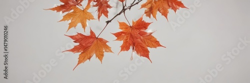 Crisp, vibrant red and orange maple leaves falling against a stark white backdrop , white, red maple leaf, leaves