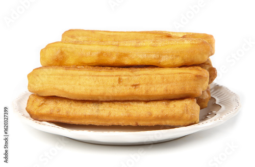 Crispy big fries served on a white plate for a gourmet traditional breakfast experience
