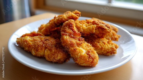 Crispy Breaded Chicken Strips on a White Plate