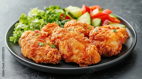 chicken, crispy, breast, piece, served, fried, side, fresh, vegetable, attractively, arranged, plate, culinary, showcase, savoury, epicure, vibrant, inviting, delicious, textured, hearty, balanced, appetising, aesthetic, flavorful