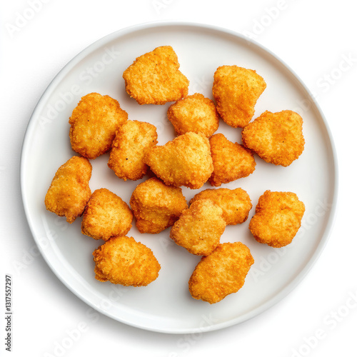 fast food, comfort food, snack, receipe, food photography, food, delicious, tasty, dinner, lunch, meal, white plate, topview, closeup, studio shot, isolated, white background, golden brown, breaded, crumb, chicken meat, juicy, savoury, gold, crunchy, homemade