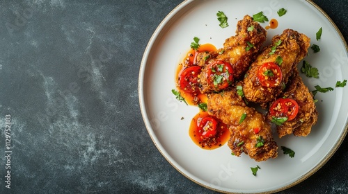 Crispy Chicken Wings with Spicy Sauce and Fresh Garnish