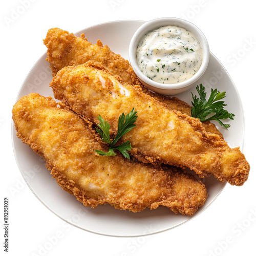 Crispy Fried Chicken Filets with Tartar Sauce: A Delicious Gourmet Meal with Savory Flavors and Golden Crunch Perfect for Lunch or Dinner