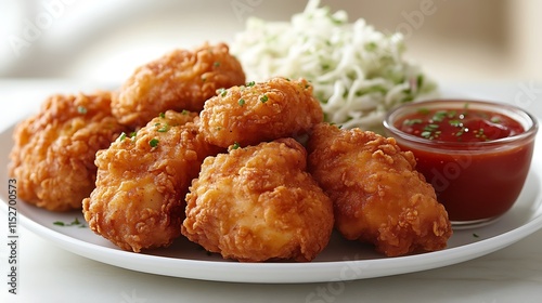 Crispy Fried Chicken Nuggets with Coleslaw and Sauce