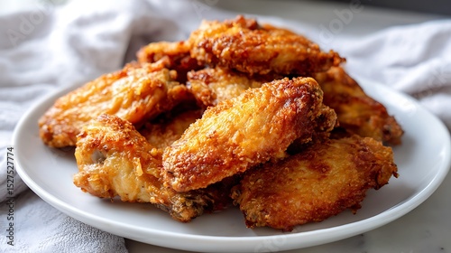 chicken wings, fried, crispy, white plate, food, meal, golden brown, table setting, cooking, dinner, snack, texture, delicious, kitchen