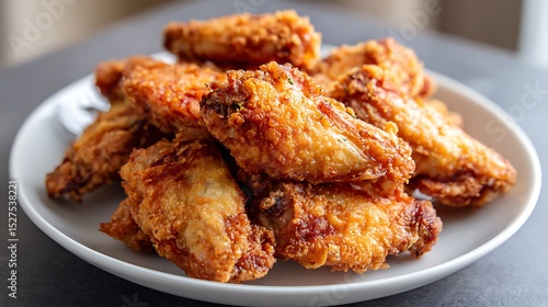 chicken wings, fried, crispy, white plate, food, meal, table, golden brown, cooking, dinner, snack, delicious, texture, serving