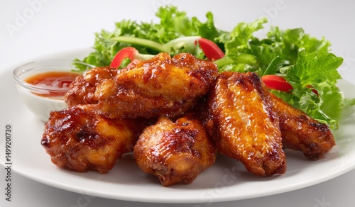 crispy, meal, salad, dish, eatery, cookery, hot, fried, american, healthy, sauce, tasty, lunch, plate, wing, chicken, glazed, closeup, image, eating, fresh, appetising, delicious, portion, dinner, serving, food, photo