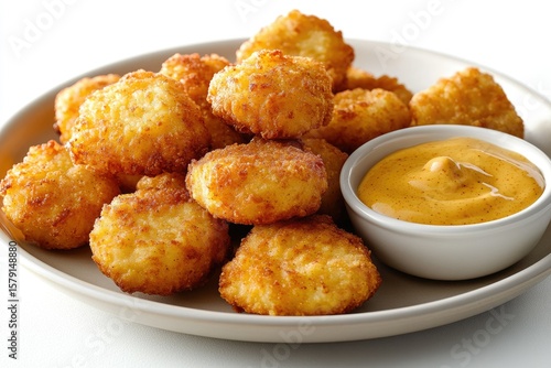Crispy golden potato nuggets served with a creamy orange dipping sauce.
