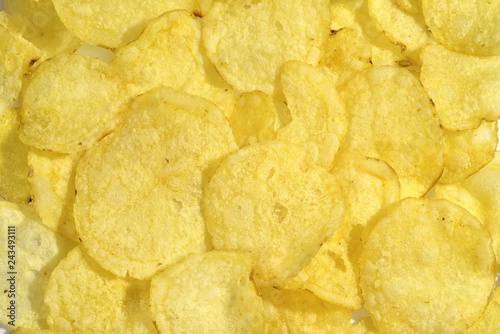 crispy potato chips snack texture, food background, close-up