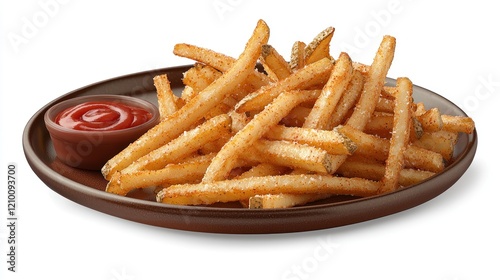 french fries, fries, ketchup, plate, food, snack, meal, delicious, tasty, side dish, fast food, junk food, comfort food, dinner, lunch, breakfast, eat, eating, cookery, culinary, food photography, high-quality, detailed, closeup, studio shot, white background, isolated, texture, appetising, photo, image, picture