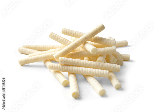 Crispy wafer rolls on a white background.