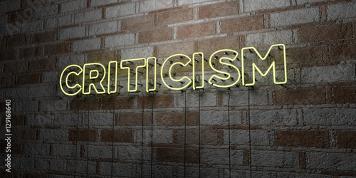 CRITICISM - Glowing Neon Sign on stonework wall - 3D rendered royalty free stock illustration. Can be used for online banner ads and direct mailers..