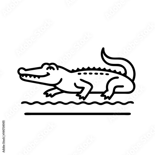 crocodile, river bank, resting, wildlife, animal, line art, illustration, black-and-white, serenity, nature, australian, reptile, habitat, calm, calmness, wave, fresh water, summer, relaxation, fauna, aquatic, scale, sun tanning, lazy, slow, drawing, outline, graphic, simple, elegance, linear, reptile, wetland, preservation, peaceful, biodiversity, natural life, species