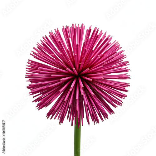 Crocosmia bloom with fiery red tubular blossoms on arching stem isolated on photorealistic white view